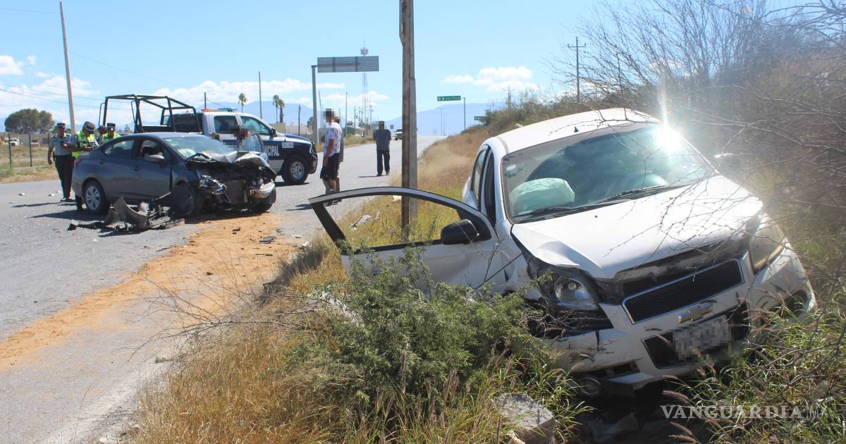 En pérdidas materiales terminó el fuerte percance automovilístico que se registró en el cruce de la carretera 57 y Los Pinos, en Ramos Arizpe, Coahuila.