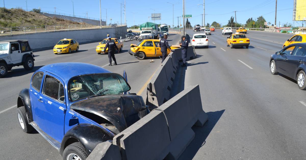 Tras el impacto, el taxi fue proyectado contra el muro de contención, mientras que el Sedan le pegó al Pontiac Grand Prix conducido por Jesús Carrales Hernández.