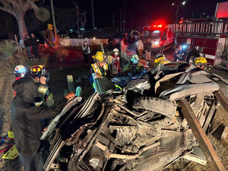 El accidente se registró cuando el conductor de una camioneta GMC Acadia, que circulaba de poniente a oriente por la Calzada Antonio Narro, presuntamente a exceso de velocidad y bajo los efectos del alcohol, invadió el carril contrario en una curva, impactándose de frente contra un Pontiac Matiz.