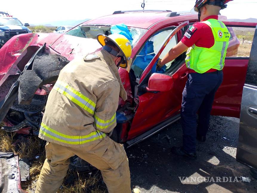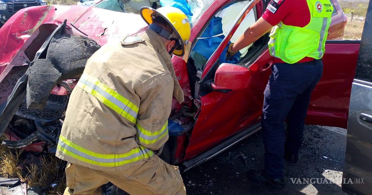 Tres personas quedaron prensadas dentro de sus vehículos tras un choque frontal registrado la tarde de este domingo sobre la carretera Carretera Saltillo–Monclova.