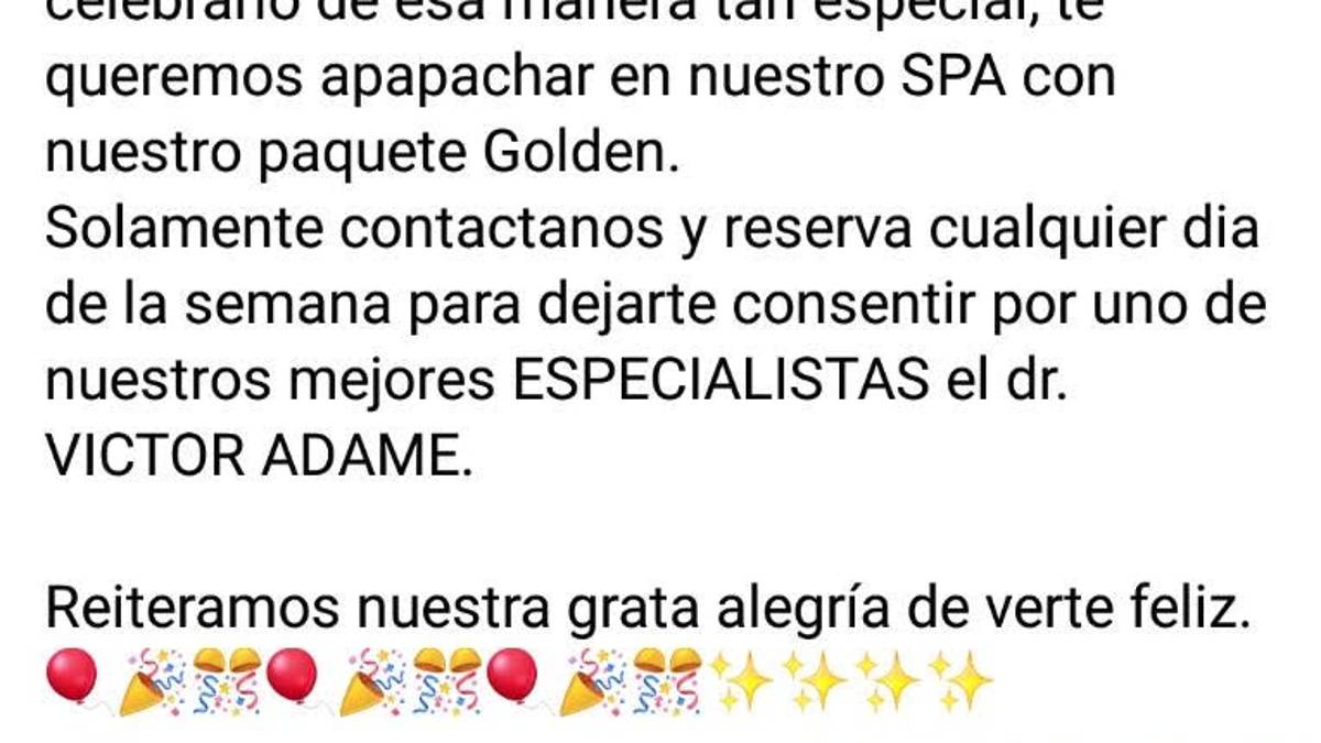 Mientras que otro de los comentarios ofreció a la quinceañera que para festejar, le regalarían una sesión en un spa para consentirla. “Samantha sabemos lo importante que es para ti tu festejo de XV años, y el poder celebrarlo de manera tan especial, te queremos apapachar en nuestro SPA con nuestro paquete Golden”, señala otro de los comentarios.
