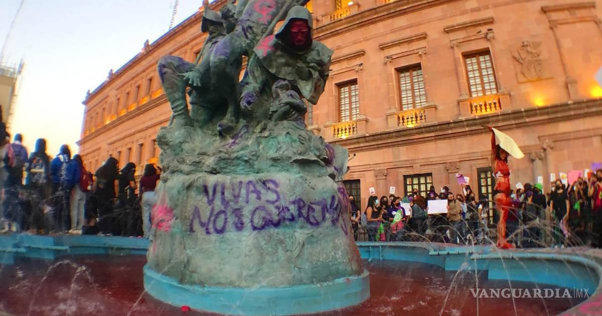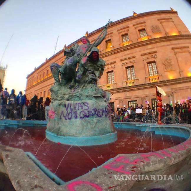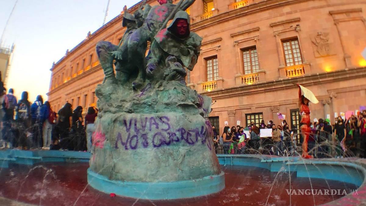 Si bien los reportes oficiales no señalan altercados durante las manifestaciones de este 8 de marzo, la polémica y molestia se hicieron presentes a través de las redes sociales cuando comenzaron a circular imágenes de pintas en inmuebles y monumentos ubicados en el Centro Histórico de Saltillo.