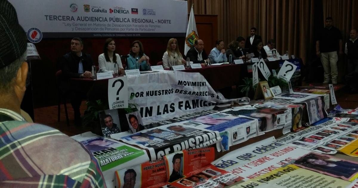 Saltillo, Coahuila. Coahuila fue sede de la Tercera Audiencia Pública Regional sobre la Ley General para Prevenir y Sancionar los Delitos en materia de Desaparición de Personas, en la que se reunieron representantes de colectivos y organizaciones encargadas de la búsqueda de personas con autoridades locales.