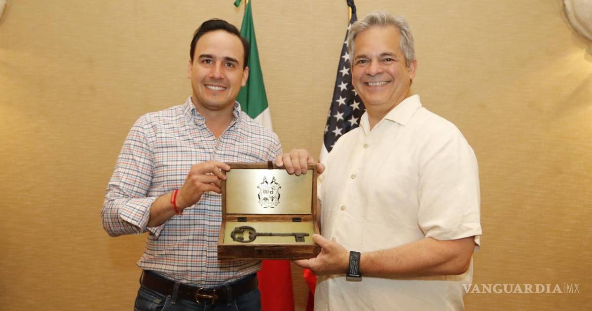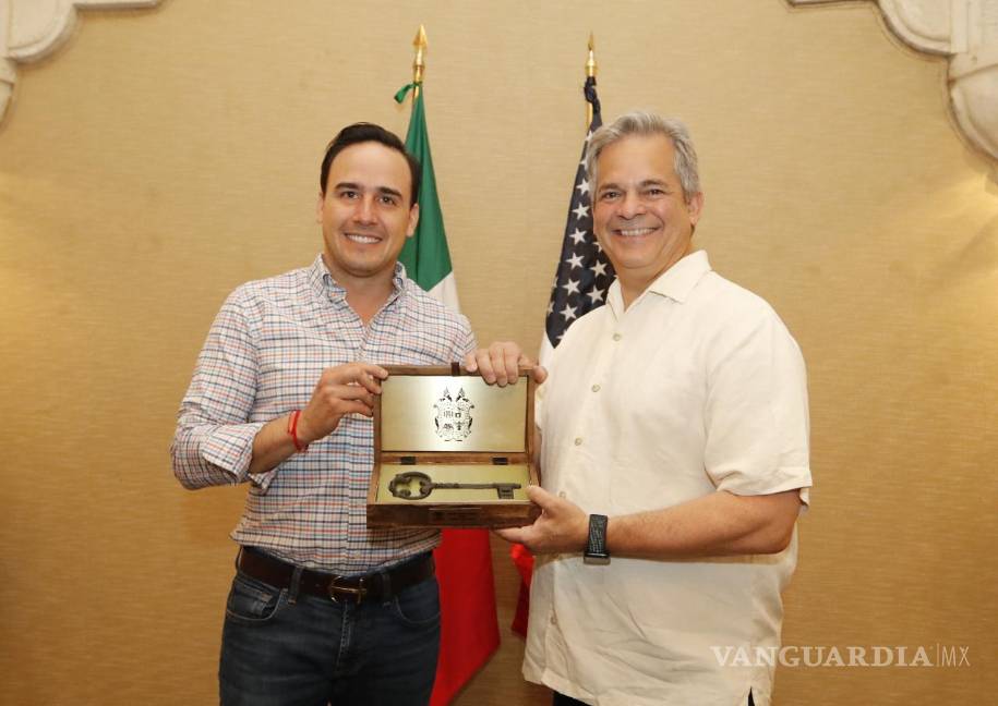 El alcalde Manolo Jiménez entregó a Steve Adler, mayor de Austin, Texas, las llaves de Saltillo.
