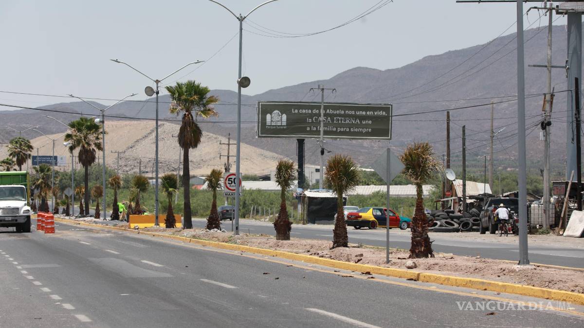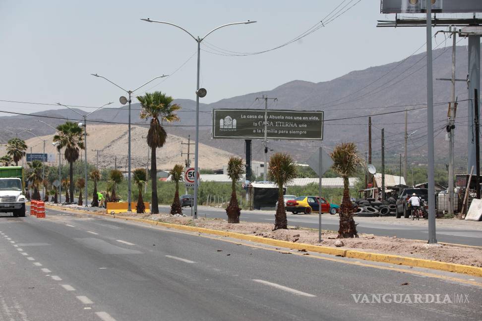 Además, en el marco de los trabajos para embellecer las entradas de la ciudad, personal municipal reforestó con Palmas el camellón central de la carretera a Torreón, en el acceso poniente de Saltillo.