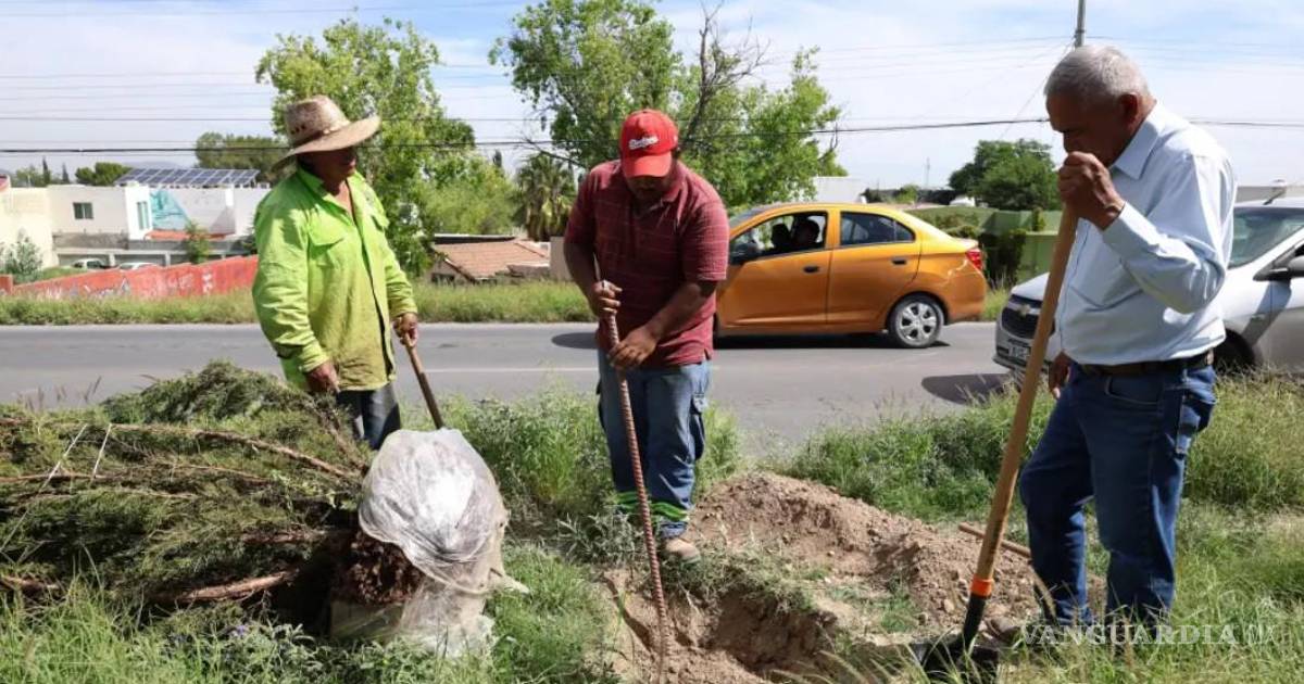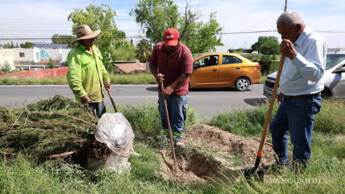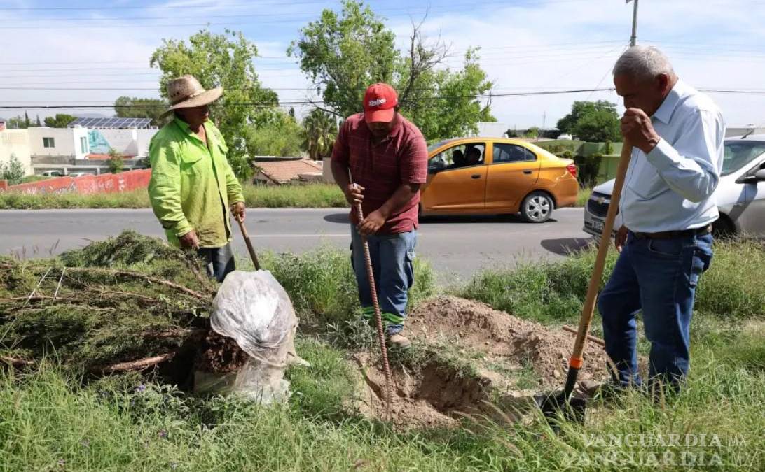 Reforestan camellones del Colosio, en Saltillo, con 50 árboles