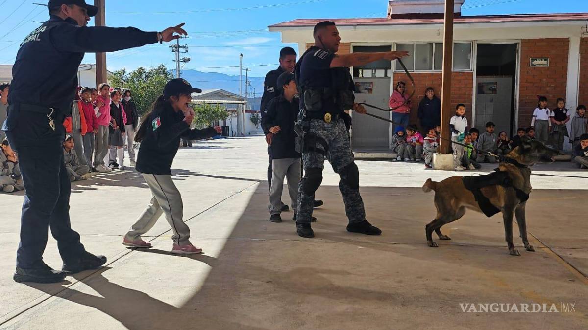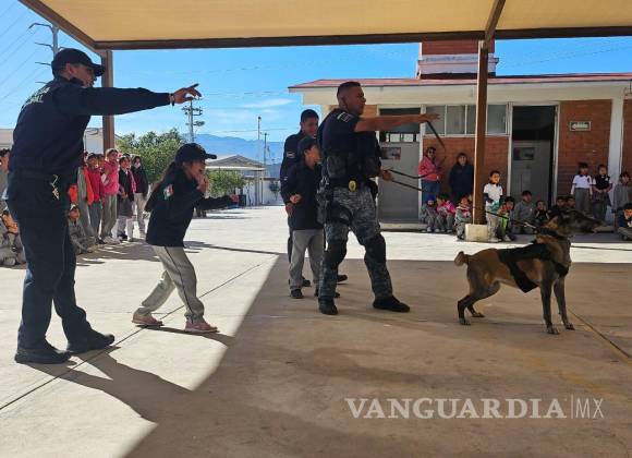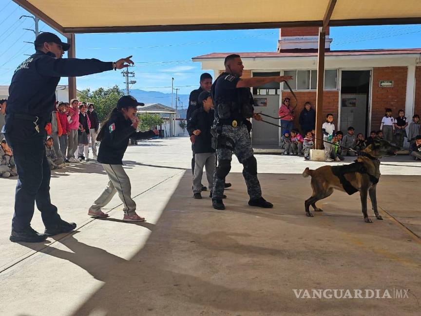 Refuerzan confianza entre estudiantes y Policía con visita del agrupamiento K9 a escuelas de Ramos Arizpe