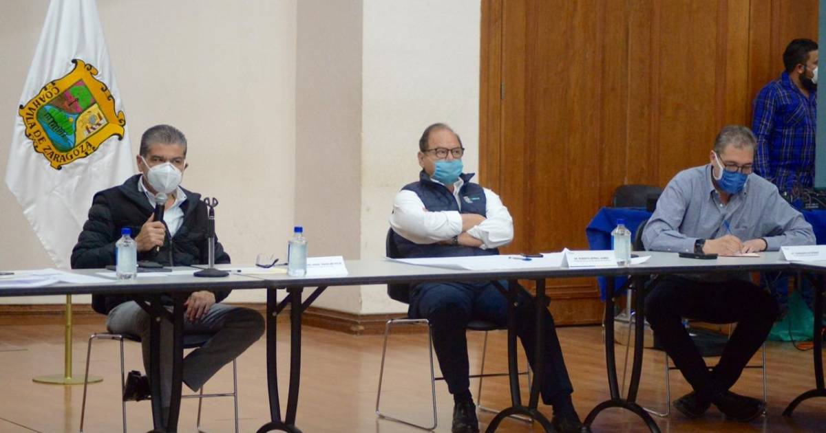 Miguel Ángel Riquelme Solís, gobernador de Coahuila, presidió la reunión de evaluación del Subcomité Regional COVID-19, acompañado de alcaldes de la Región Centro, donde dio a conocer a detalle el proyecto y plano del hospital móvil para pacientes de consulta ordinaria, que serán enviados a este inmueble ubicado a un costado del Hospital Amparo Pape de Benavides.
