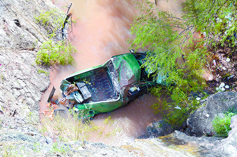 Antes de llegar a un puente que cruza sobre un arroyo, el joven sintió que el volante se hacia muy duro, después no pudo controlar ya el vehículo y giró bruscamente a la derecha, cayendo 15 metros al barranco.