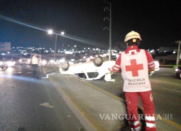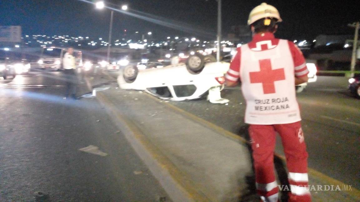 Reportan aparatosa volcadura en Periférico de Saltillo