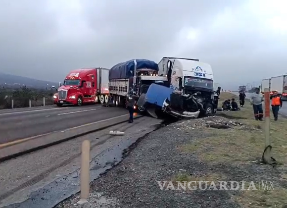 Un choque entre un tráiler y un camión tipo tortón sobre la carretera a Saltillo dejó un lesionado la mañana de este jueves.