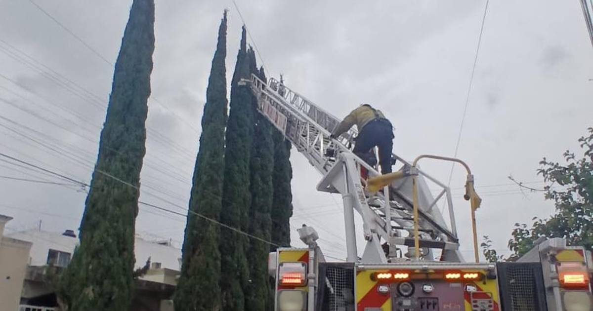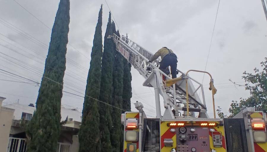 Elementos del Cuerpo de Bomberos rescataron a una gatita que había quedado atrapada en lo alto de un árbol en la colonia Ampliación Morelos, al oriente de Saltillo.