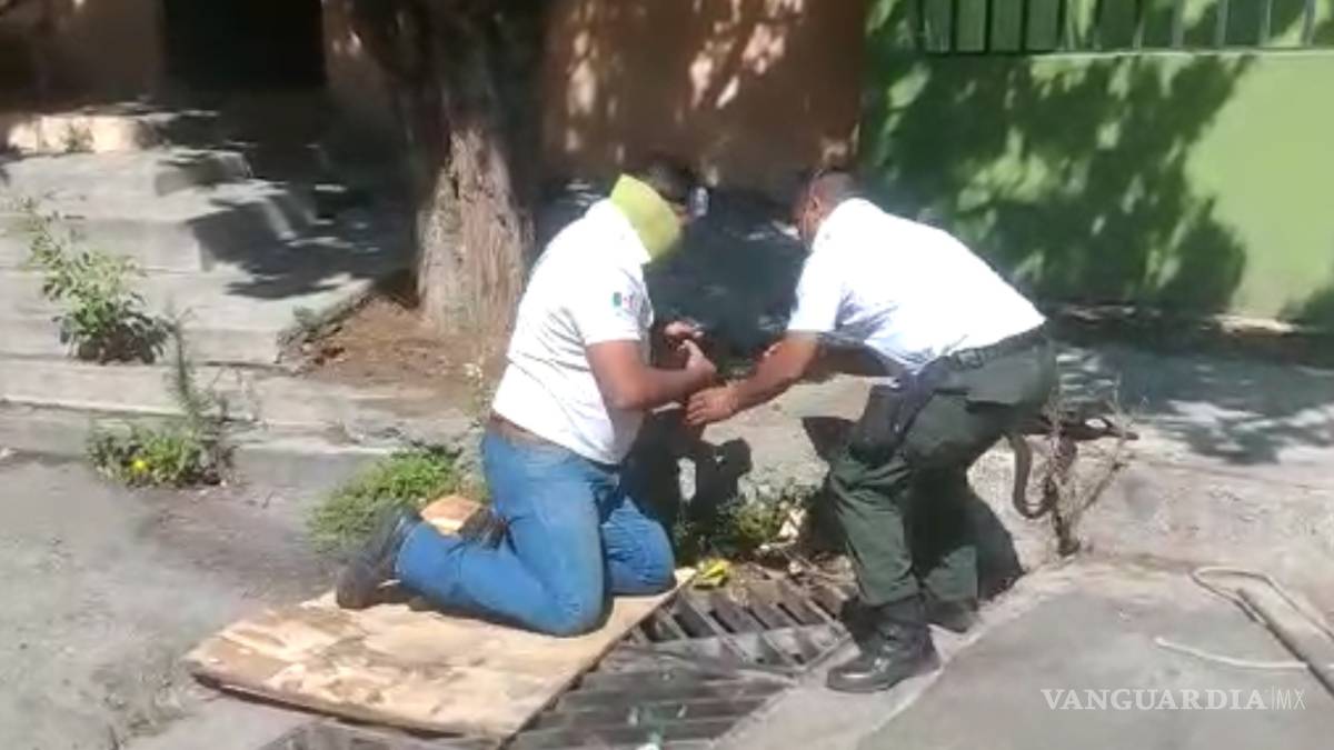 Con cuerda lo sostuvieron del cuello, mientes uno de los oficiales metía la mano para sostenerlo, una vez agarrado, lo soltaron de la cuerda y con cuidado lo sacaron para llevarlo a revisión. Se desconoce si cayó en la alcantarilla o alguien lo arrojó ahí.