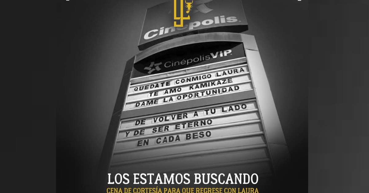 “Quédate conmigo Laura […] te amo kamikaze […] dame la oportunidad de volver a tu lado y de ser eternos en cada beso”, decía el mensaje que duró expuesto 40 minutos.