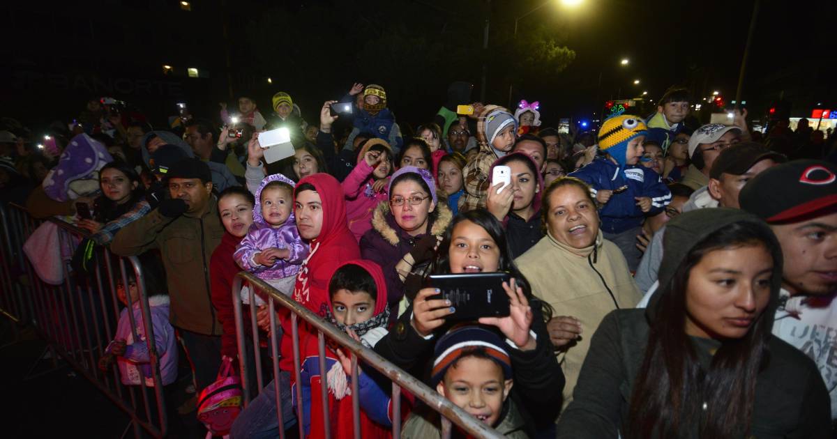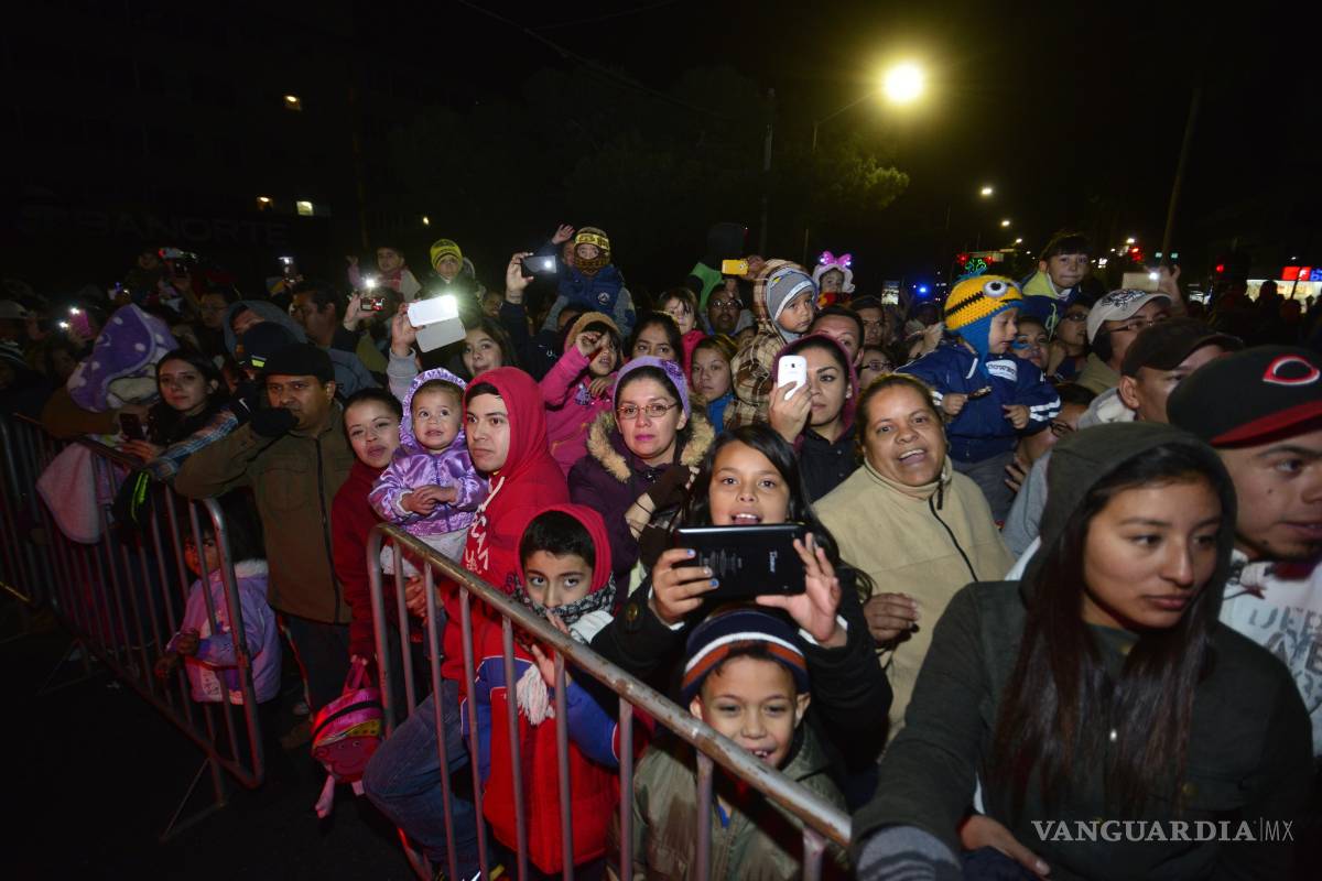 Saltillo, Coahuila. A pesar de las bajas temperaturas 200 mil personas (según datos del departamento de comunicación social del DIF estatal, el equivalente a la cuarta parte de la población de Saltillo) disfrutaron el desfile navideño que inició a las siete de la tarde en la Plaza de las Ciudades Hermanas en el centro de Saltillo. Rubén Moreira, gobernador de Coahuila, y su esposa Carolina Viggiano, diputada federal —acompañados de sus hijos— dieron el banderazo de salida del último festín en el año.