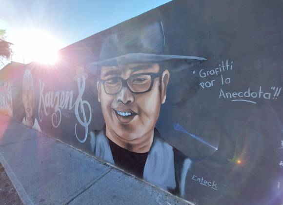 El artista urbano explicó que una de esas frases es: Puedes salir del barrio pero el barrio no sale de ti. “Eso creo que lo tenemos muy marcado en el grafiti”, refirió Enteck, quien también considera que esta obra es una manera de rendir homenaje a Franco Escamilla.
