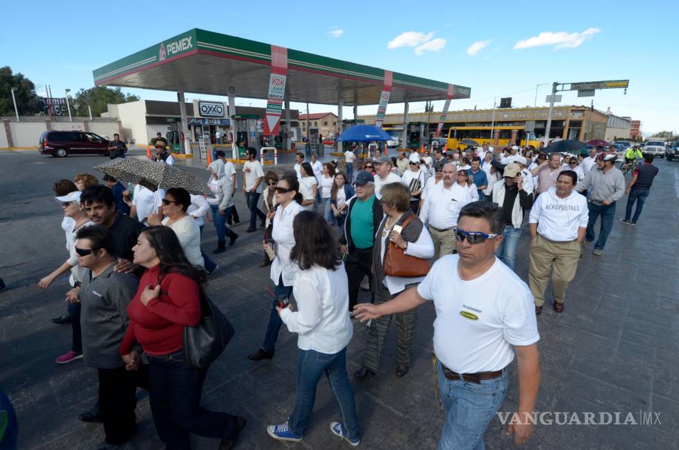 Cerca de mil cuahuilenses realizaron este mediodía en Saltillo una marcha para protestar en contra del Gobierno Federal por el aumento al precio de las gasolinas y diese