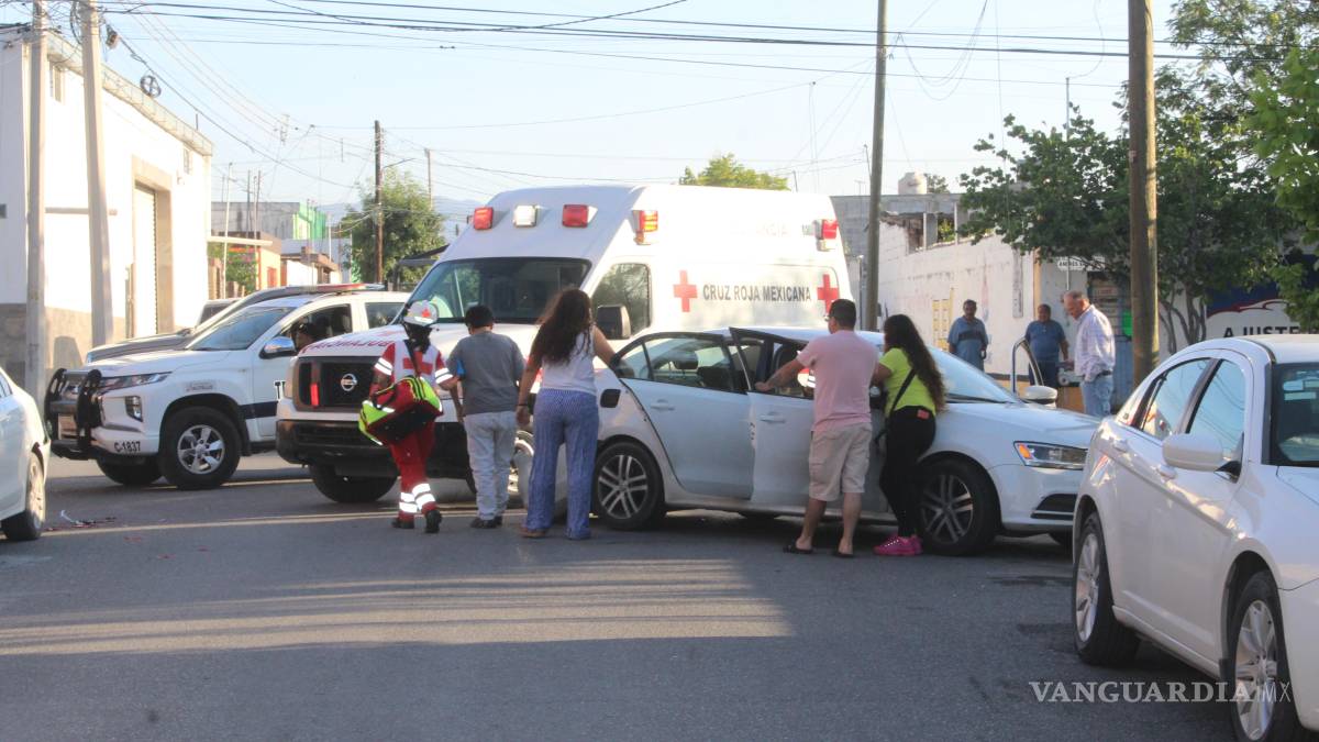 Un aparatoso accidente ocurrido en la colonia Topochico, en Saltillo, dejó como saldo dos jóvenes lesionados y daños materiales a tres vehículos, luego de que una camioneta Dodge RAM presuntamente se pasara una señal de alto.