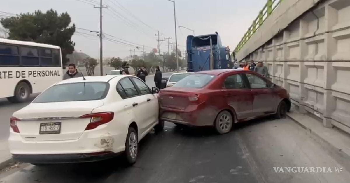 Saltillo: aceite en el pavimento desata choque múltiple en Vito Alessio Robles