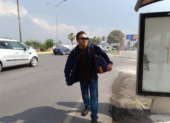Cansado, pero con la necesidad de llegar a su centro de trabajo la caminata continuó. De nuevo tomó las maletas y se dirigió al bulevar López Mateos esperando tener mejor suerte, pero lo único que consiguió fue un baño de agua puerca en su andar cerca de la cuneta, cortesía de una camioneta.