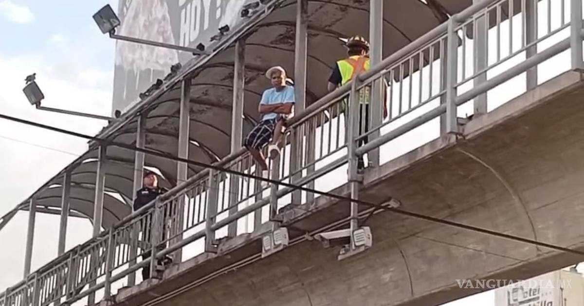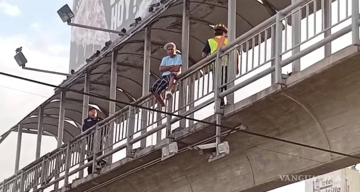 Saltillo: Bomberos salvan a hombre que amenazaba con lanzarse de puente peatonal