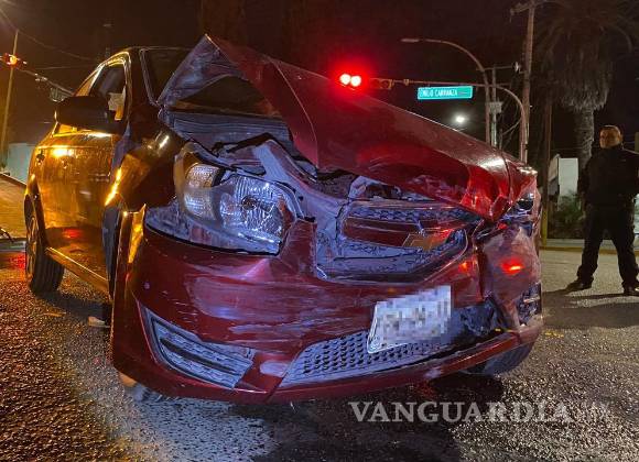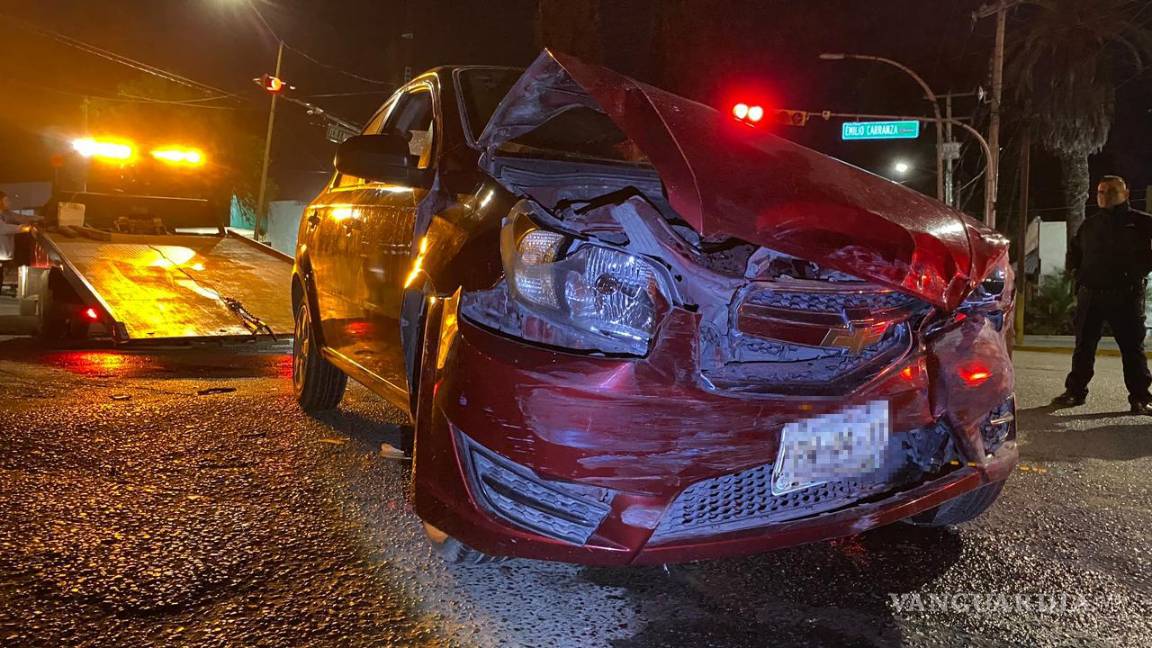 Un choque entre tres vehículos se registró alrededor de las 00:15 horas en la Calzada Francisco I. Madero, cuando el conductor de un Volkswagen Pointer, aparentemente en estado de ebriedad, se pasó un semáforo en rojo al llegar a la intersección con la Calzada Emilio Carranza, en Saltillo.