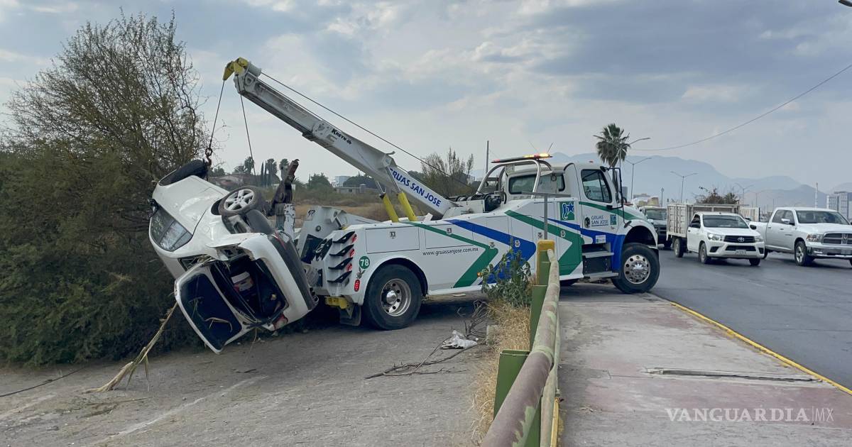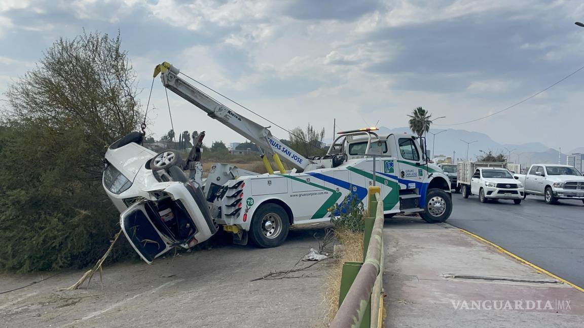 Saltillo: conductora pierde el control en el Colosio y termina al fondo de un arroyo