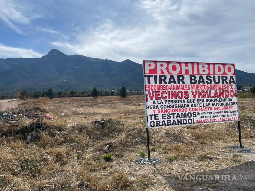 Vecinos de la colonia Lomas Verdes, al suroriente de Saltillo, se organizaron para limpiar un predio y colocar un letrero de advertencia para frenar a quienes utilizan la zona como basurero clandestino.