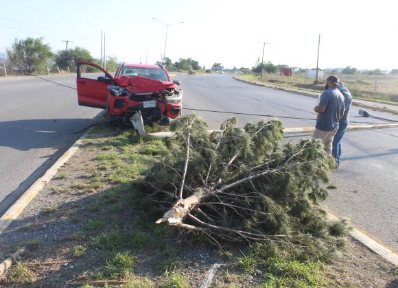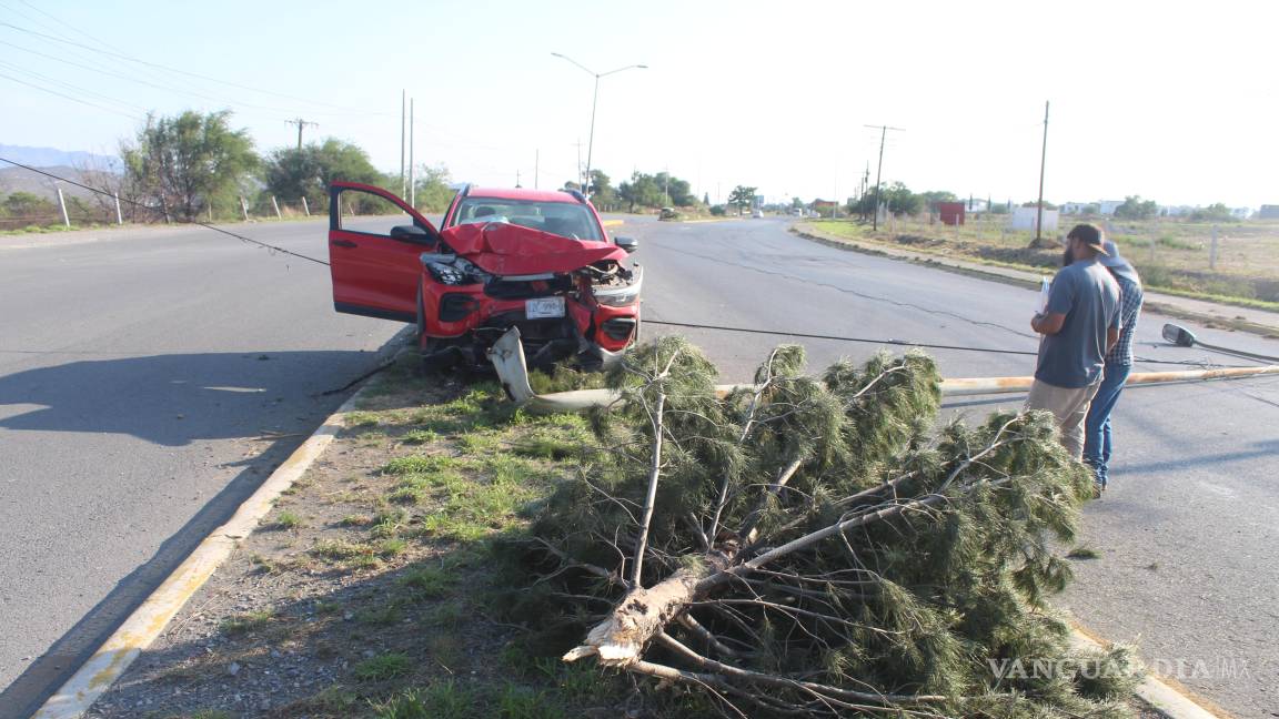 Saltillo: derriba luminaria y árbol tras quedarse dormido al volante