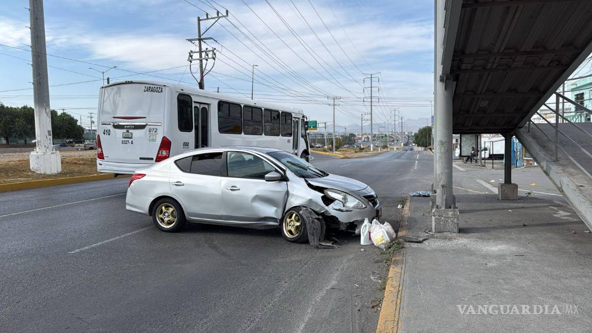 El automóvil terminó impactado de costado en la parte delantera derecha contra la estructura del puente peatonal. Tras el choque, el hombre descendió del vehículo visiblemente desorientado por el golpe y fue apoyado por elementos de Tránsito Municipal mientras llegaban sus familiares.