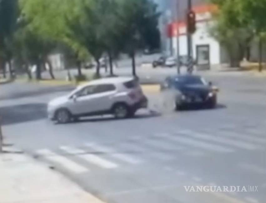 Saltillo: imprudente conductora provoca choque al pasarse la luz roja en pleno V. Carranza (VIDEO)