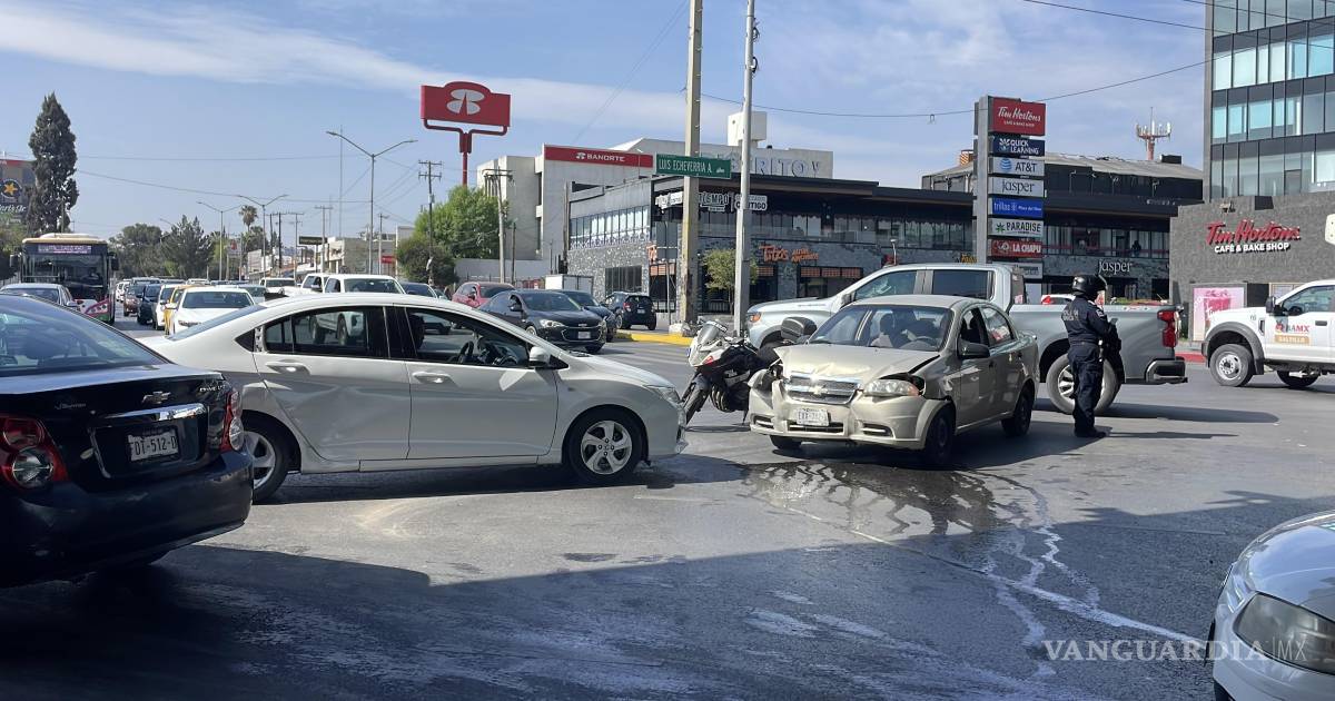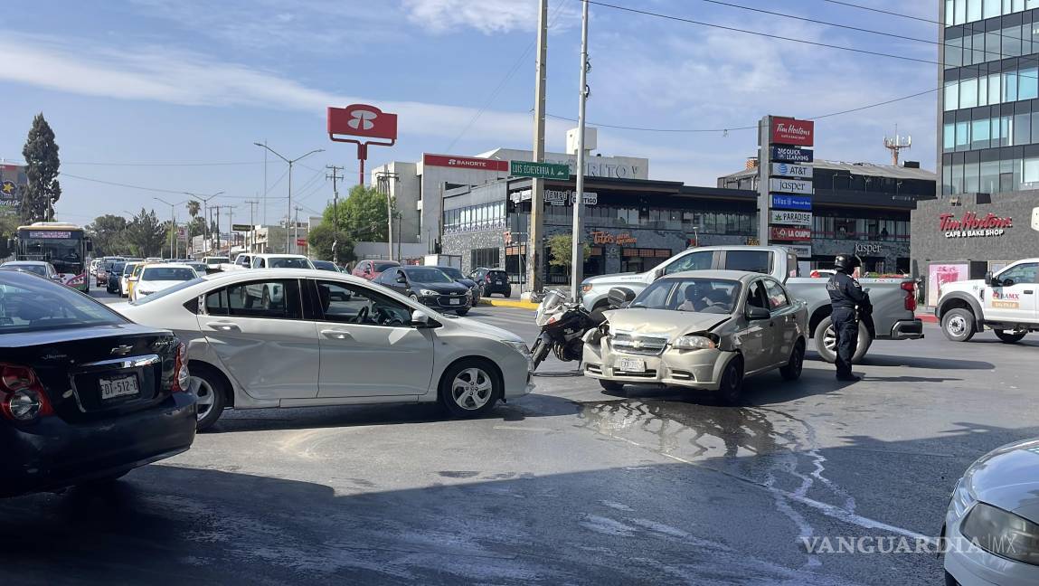 Un accidente vial se registró en el cruce del bulevar Venustiano Carranza y el periférico Luis Echeverría Álvarez, donde participaron dos vehículos y se generó afectación momentánea a la circulación y daños materiales, en Saltillo.