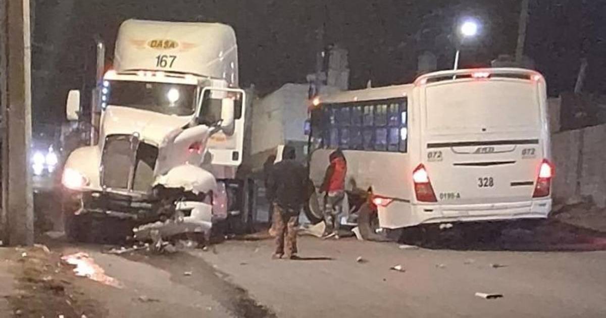 Como resultado, el tráiler impactó el costado de la unidad de transporte público, provocando daños materiales en ambos vehículos.