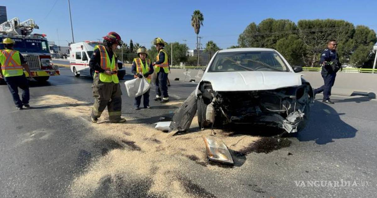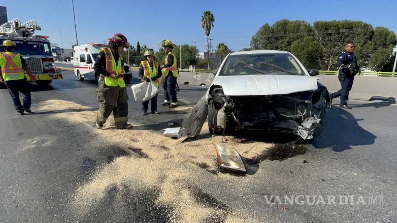 Saltillo: joven vuelca y cae sobre sus neumáticos tras chocar contra ballenas en V. Carranza
