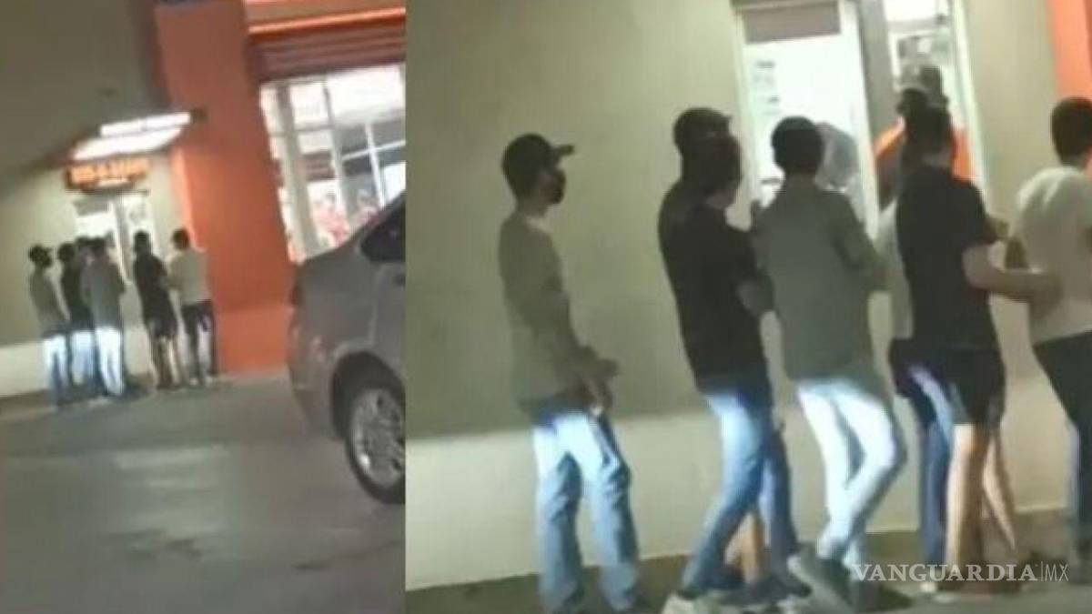 En la grabación se puede ver a un grupo de 7 jóvenes simulando viajar en un automóvil, rumbo a la ventanilla del establecimiento.