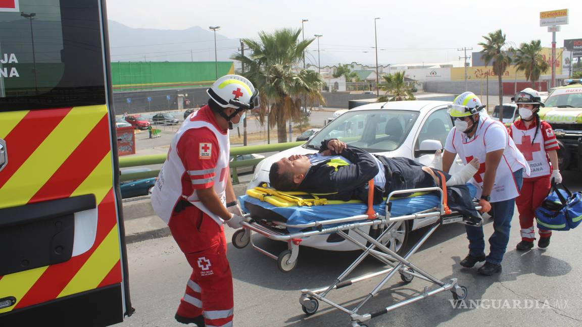 Un promotor de productos lácteos y embutidos resultó con lesiones de consideración luego de impactarse contra una malla protectora mientras conducía su motocicleta a exceso de velocidad. El accidente ocurrió la mañana de este martes sobre el puente del bulevar Fundadores, a la altura de la colonia Mirasierra, en Saltillo.