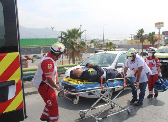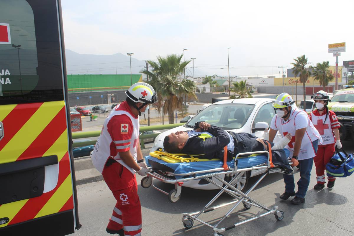 Paramédicos de la Cruz Roja lo valoraron en el lugar tras ser colocado en una patrulla de auxilio vial. Debido a la gravedad de sus lesiones, fue necesario utilizar camillas rígidas y equipo de inmovilización para poder trasladarlo con seguridad a la Clínica 2 del Instituto Mexicano del Seguro Social (IMSS).