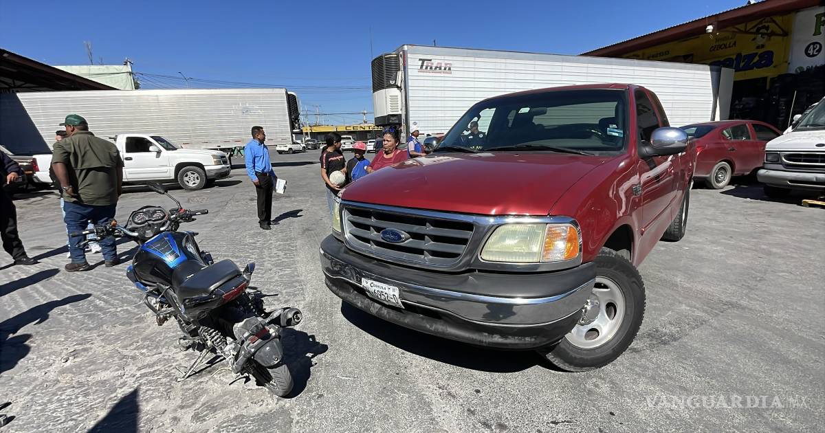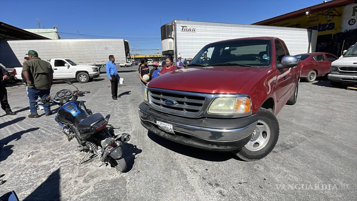 Saltillo: Motociclista resulta lesionado tras choque con camioneta en la Central de Abastos