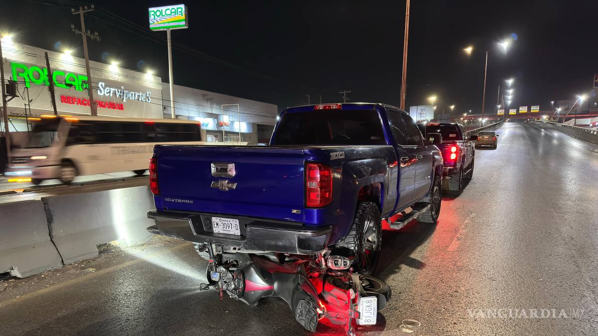 Un motociclista resultó con lesiones graves luego de caer de su unidad tras realizar un rebase sin precaución en la colonia Avícola, en hechos ocurridos durante la noche sobre el Periférico Luis Echeverría Álvarez, en Saltillo.