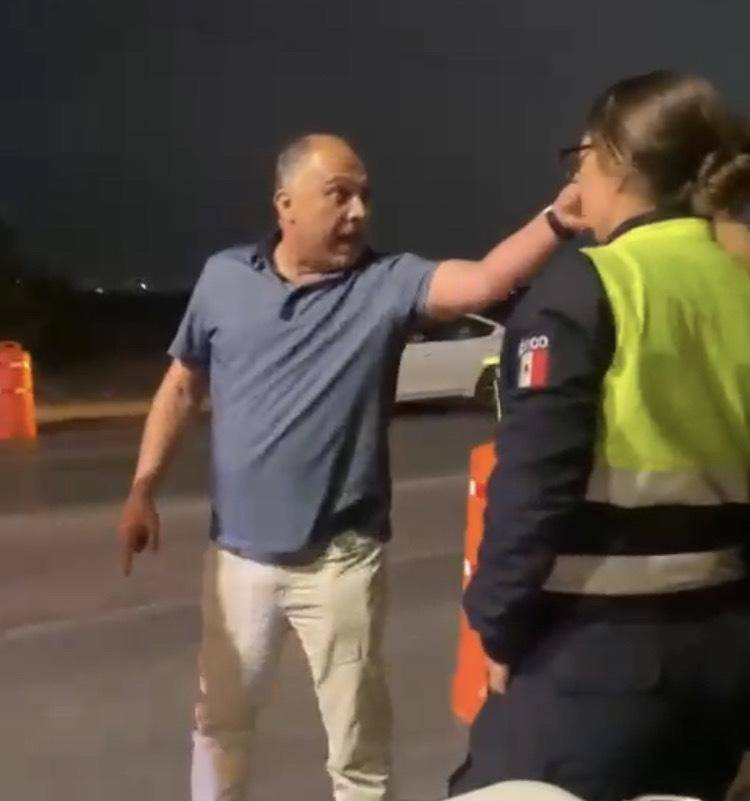 En otro video se puede apreciar donde les grita a los elementos de seguridad: “¿dónde te los pago, cabrón?”, a lo que un oficial le responde que en ese punto no se puede pagar, generando un nuevo revire: “me los limpio en el cu..., cabrón, pues llévatelo ya de una vez para pagártelo, a mí no me tardas, cabrón”.