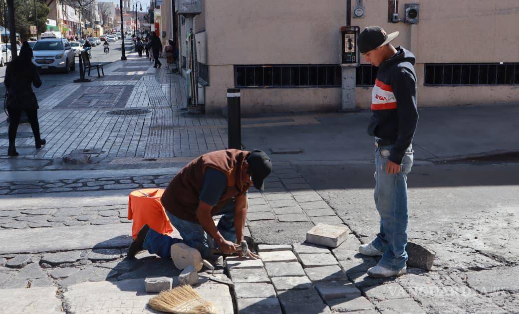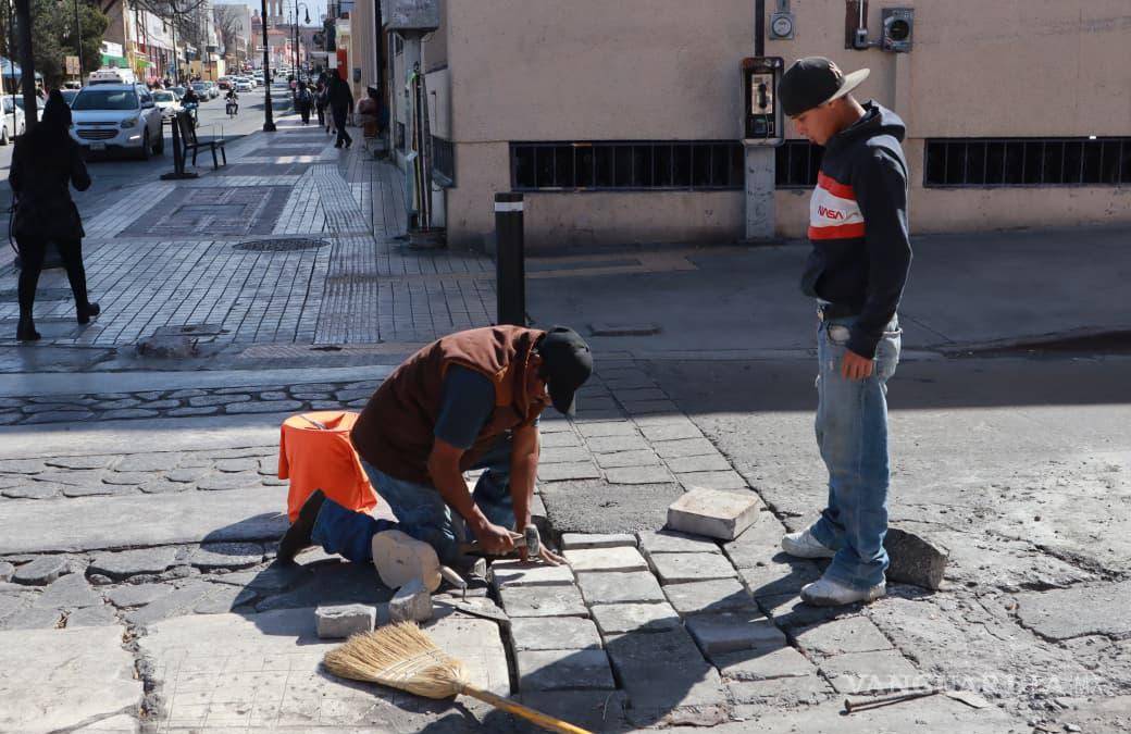Saltillo: Reparan calle Álvaro Obregón del Centro Histórico para una movilidad más segura