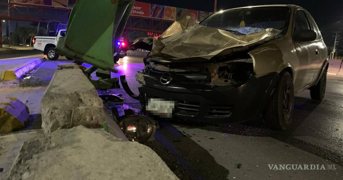 Un vehículo Chevy terminó impactándose contra una barrera de contención tras chocar por alcance contra un transporte de personal en el bulevar Fundadores, a la altura de la colonia Magisterio Sec. 38 en Saltillo.