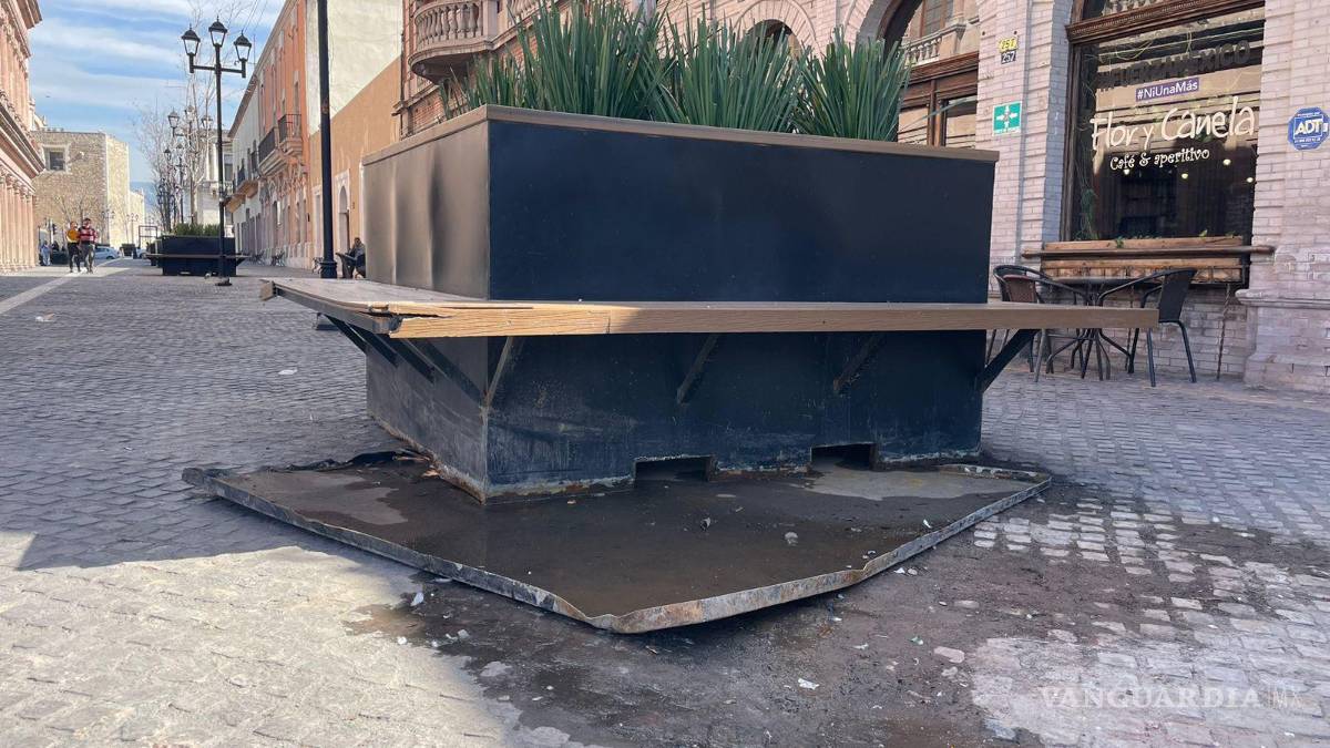 La mañana de este viernes, fueron reportados daños a escalones de la Plaza Nueva Tlaxcala y jardineras de Paseo Capital en el Centro Histórico de Saltillo.