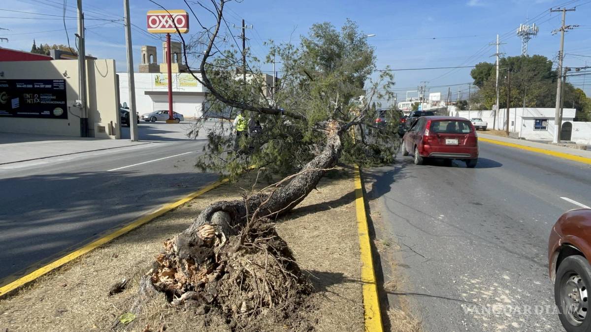 Saltillo: tráiler derriba árbol en Valdés Sánchez; conductor intentó huir