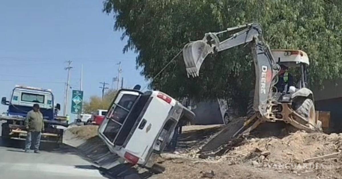 Saltillo: Vuelca camioneta en la Antonio Narro; conductor resulta ileso