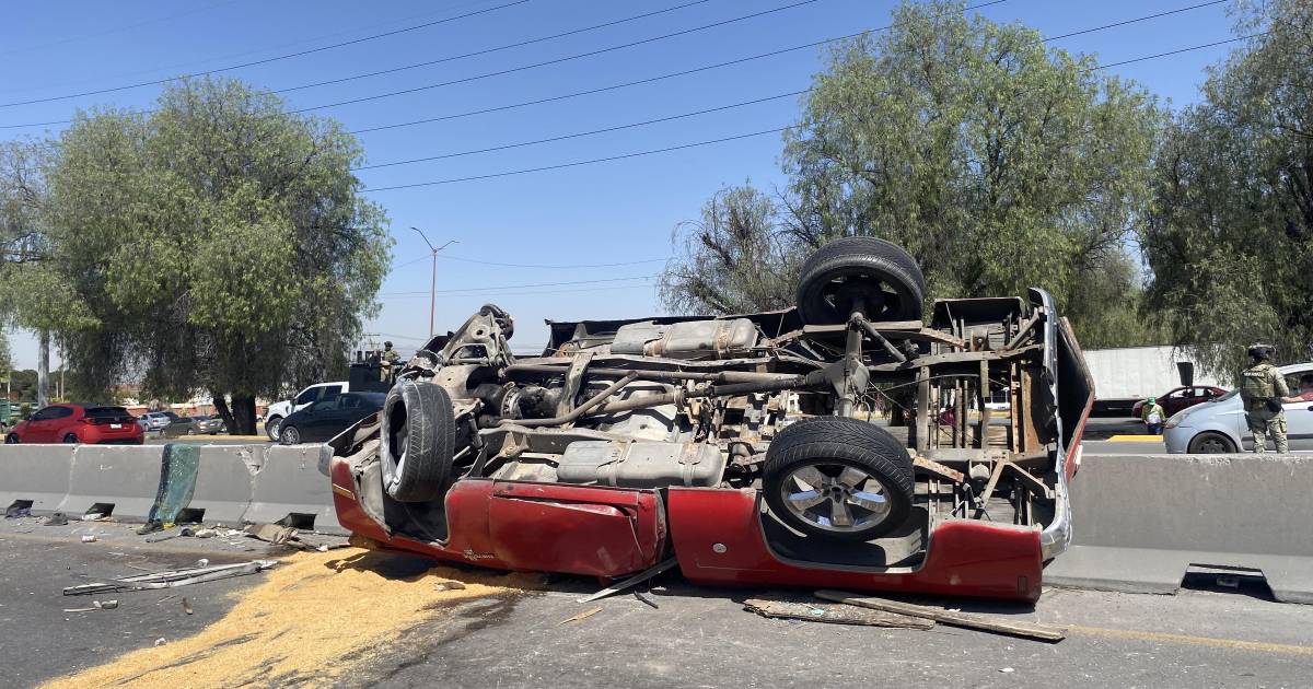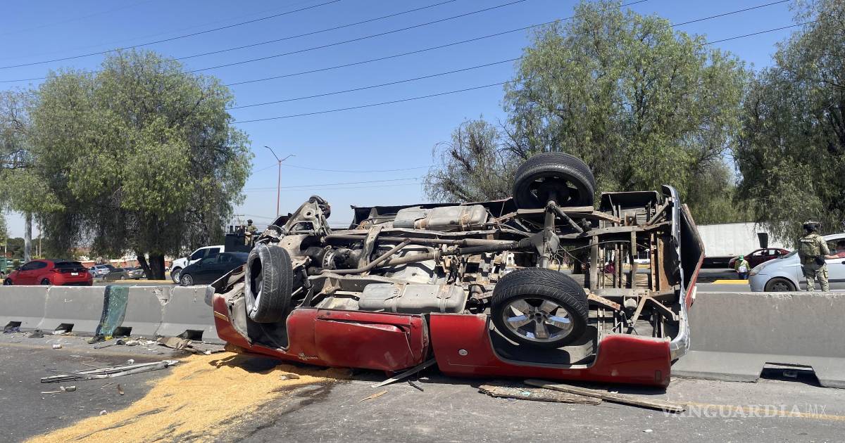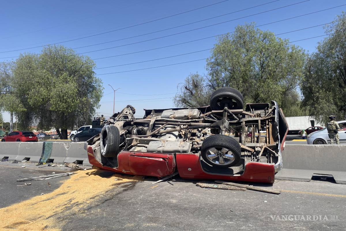 Corriendo es como se fue el conductor de una camioneta que, tras chocar y volcarse en el cruce de Fundadores, con dirección a Saltillo y Arteaga, dejó atrás una escena de caos y confusión la mañana de este sábado.