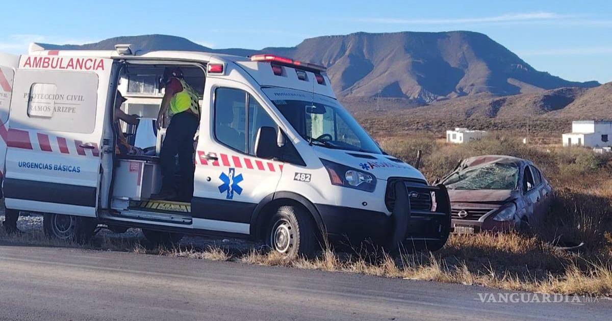 RAMOS ARIZPE.- A pesar del aparatoso accidente en el que participaron, dos jóvenes resultaron con lesiones leves luego de que el vehículo en el que viajaban volcara la tarde de este martes, presuntamente a causa de la ponchadura de una llanta, en la carretera a Los Pinos.