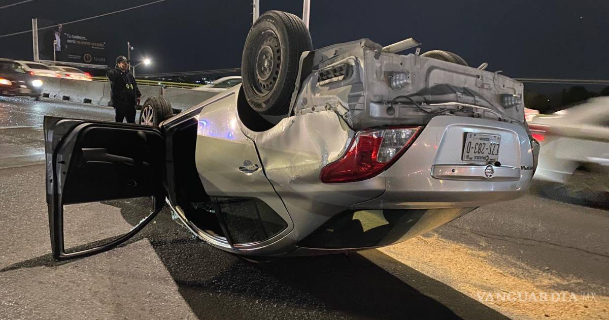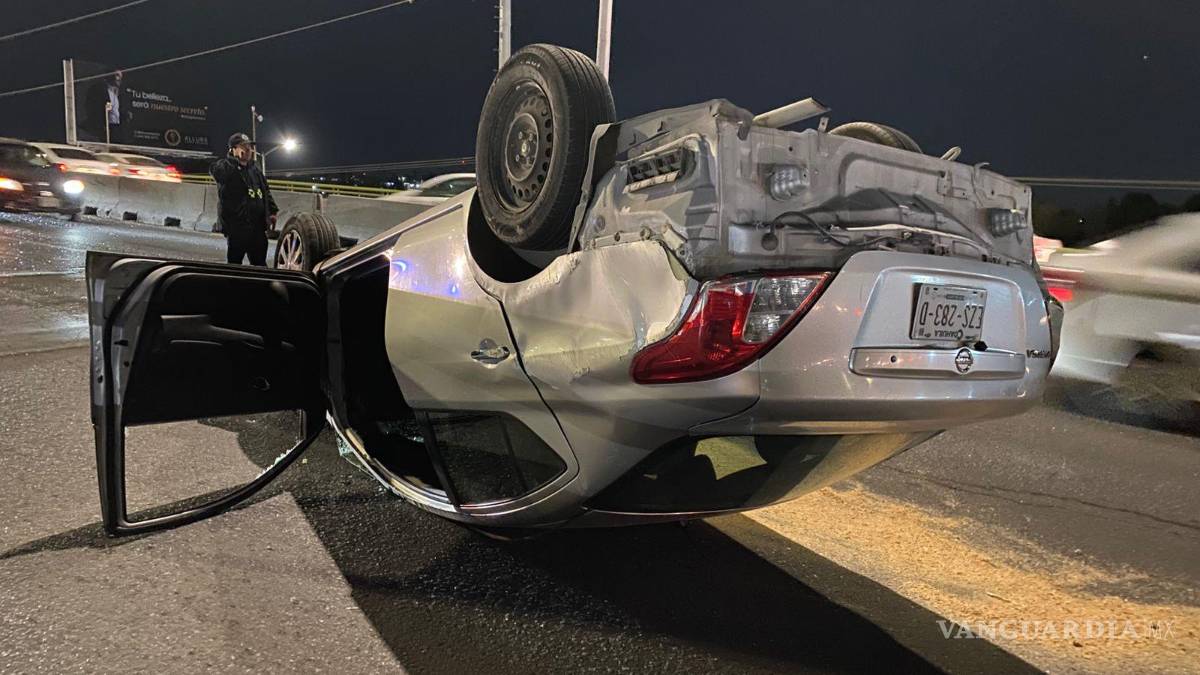 Salvan su vida luego de chocar y volcar en el periférico, en Saltillo