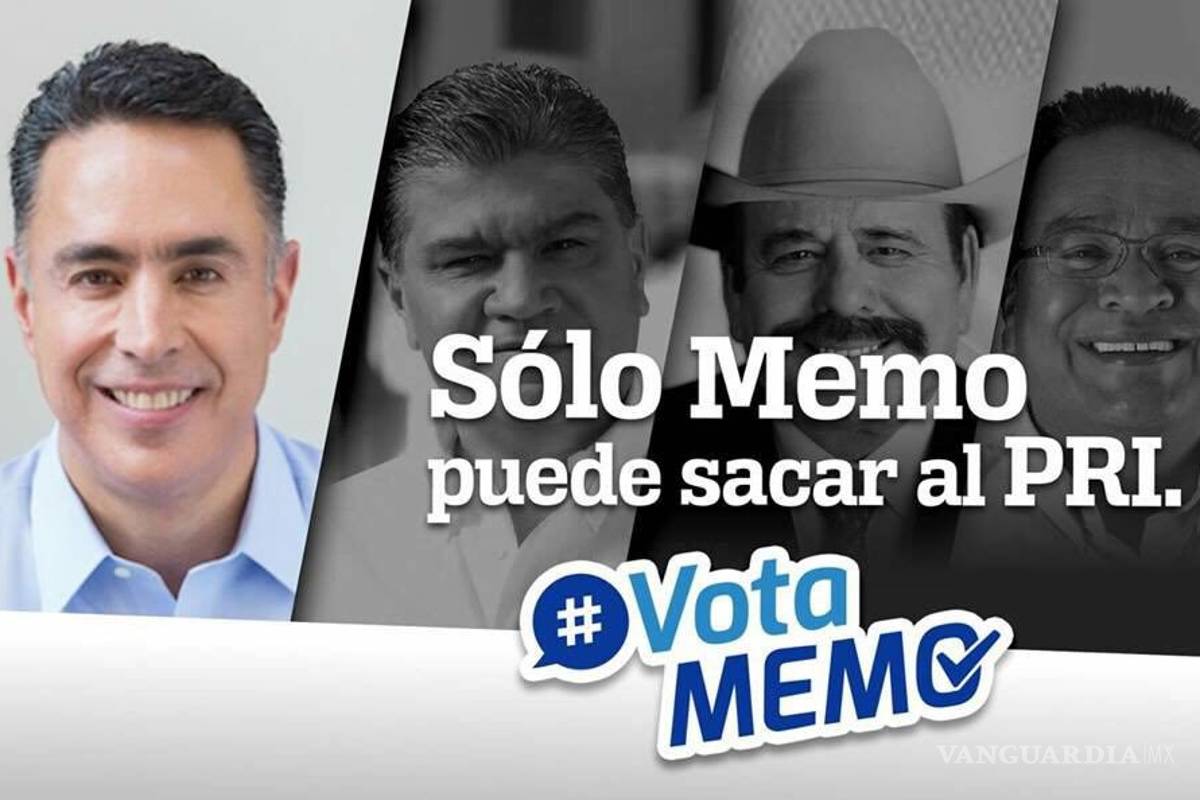 Además, porque en esta publicidad se promocionaba con el hashtag vota Memo y solo Memo puede sacar al PRI, pero utilizando también, en el mismo, las imágenes de Miguel Riquelme, Armando Guadiana y Javier Guerrero, pero sin el logo del PAN o la Coalición.