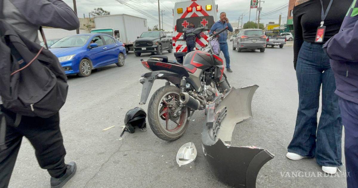 Se accidentan trabajadores de fábrica al norte de Saltillo; motociclista termina lesionado